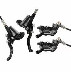 Los Frenos HOPE TECH 3 E4 Negro Negro es ideal para practicar All Mountain y ENDURO. Los 4 pistones aseguran una frenada potente (5 % más potente que la antigua versión del Tech Evo), el puente y el deposito se han rediseñado para suprimir el peso innecesario y mejorar el aspecto. La maneta se coloca fácilmente en el manillar y es compatible con los mandos Shimano I-Spec y con adaptadores a los mandos Sram. Destaca el parámetro de ajuste BPC (Bite Point Control) que se realiza directamente sobre la maneta.
