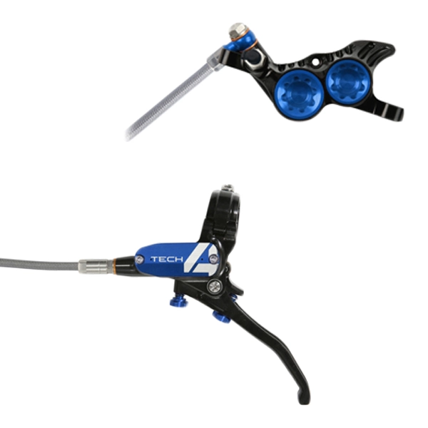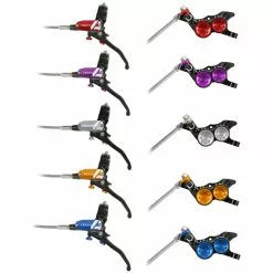 Los nuevos frenos HOPE Tech 4 V4 con latiguillo metálico son preciosos, exclusivos, con una calidad de fabricación espectacular y con un poder de frenada brutal. Si lo tuyo es el DH, enduro o tienes una Ebike potente, estos son tus frenos. Se aconsejan para cualquier uso, pero donde se aprecia su rendimiento es llevándolos al límite en los descensos más largos y complicados. Es ahí donde sacan a relucir todas sus cualidades. Con los nuevos Hope Tech 4 V4 se ha conseguido un aumento de potencia del 30% en comparación con el Tech 3. El Tech 4 utiliza un sellado interno completamente nuevo, además el pivote gira sobre rodamientos reduciendo la fricción, minimizando la fatiga en las manos y se manteniendo la modulación y la sensibilidad. La pinza del V4 está mecanizada en una sola pieza y utiliza pistones de acero inoxidable de estilo híbrido. Tienen un inserto fenólico que permite un movimiento más suave y además menos mantenimiento. Al mismo tiempo resiste la altas temperaturas sin transferencia de calor durante el uso extremo. El latiguillo metálico evita la dilatación del sistema hidráulico por el calentamiento manteniendo la potencia de frenado. Este tipo de frenos también son muy aconsejable en Ebikes, ya que el elevado peso de estas bicis exige una potencia extra.